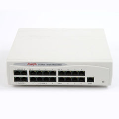 The IP Small Office 4T+4A+8DS 16VC comes equipped with four analog extensions, four analog trunks, 8 digital station ports, and the capacity for three Voice over IP. This unit also has a four-port ethernet switch as well as a dedicated switched Ethernet WAN port that makes the system more suitable to broadband services like Cable and DSL.